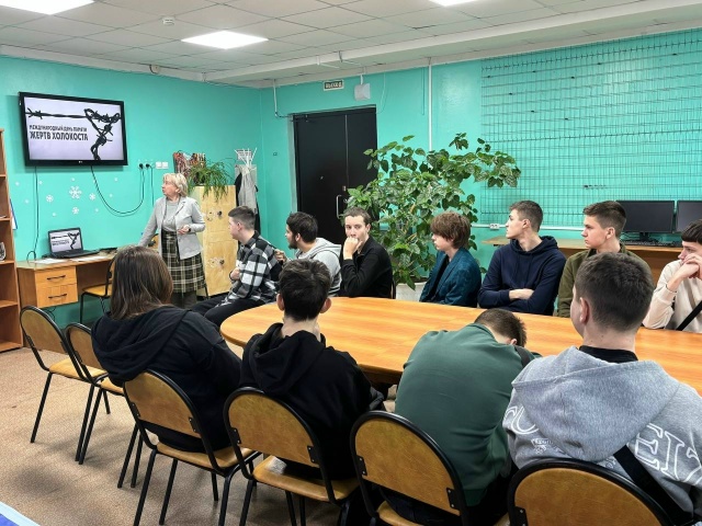 В связи с этой датой старший научный сотрудник Мемориального комплекса "Медное" Карасёва Т.С. выступила с докладом в ГБПОУ "Тверской колледж транспорта и сервиса". Студенты узнали о событиях оккупации и освобождения Калинина и области, а также о зверствах фашистов на Тверской земле - о геноциде советского народа и о Холокосте в частности.